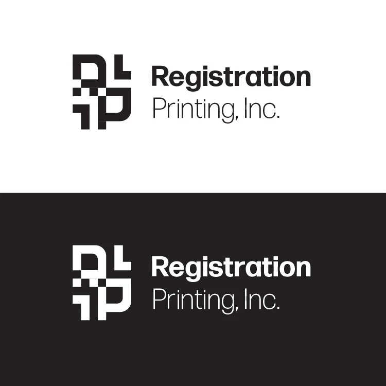 The logo and branding kit for Registration Printing was created in collaboration with Carson Mills.